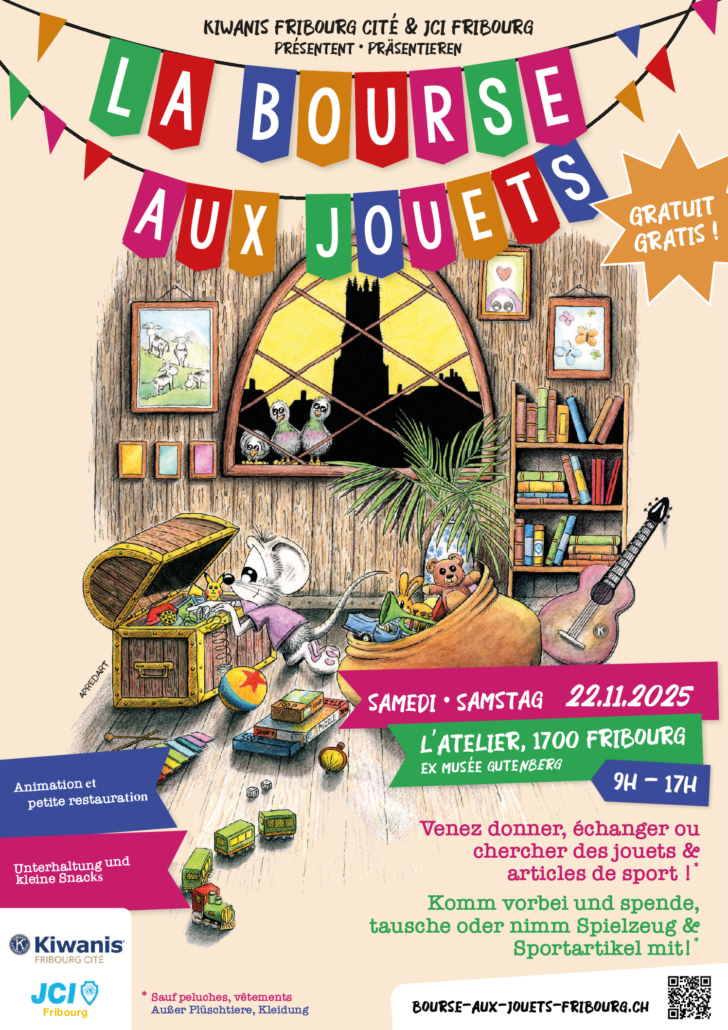 Le club Kiwanis Fribourg Cité organise une nouvelle édition de la Bourse aux jouets et articles de sport à Fribourg.