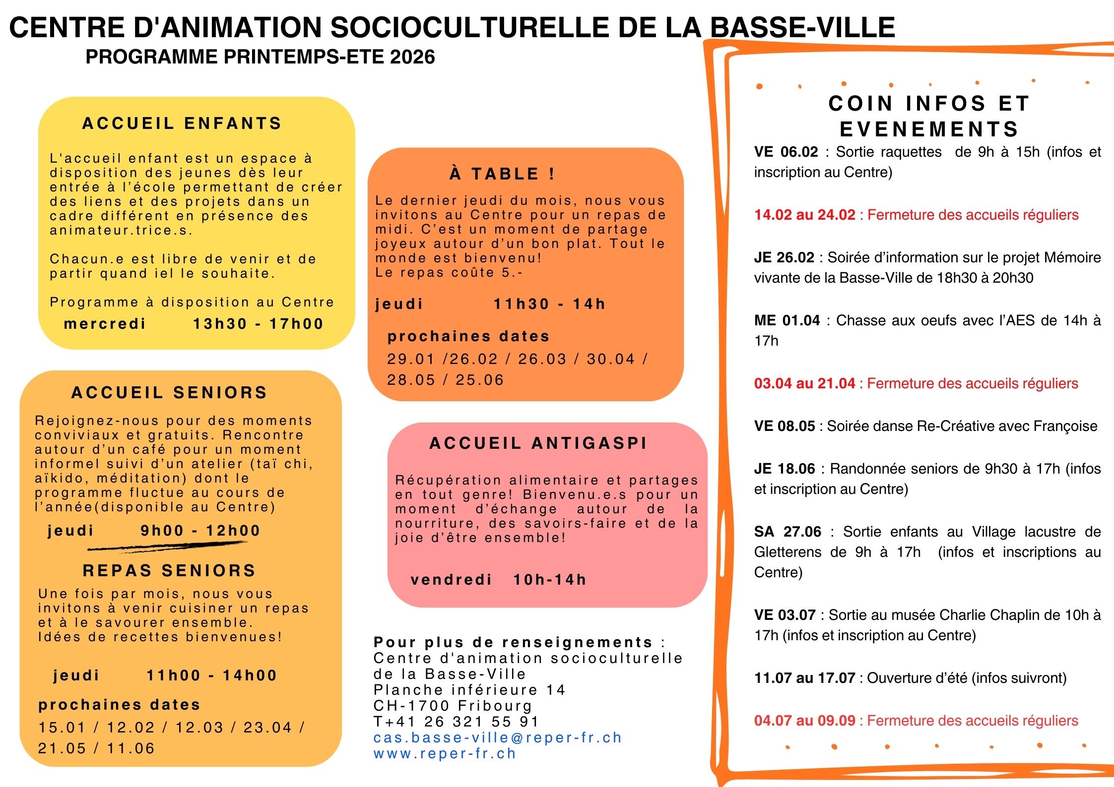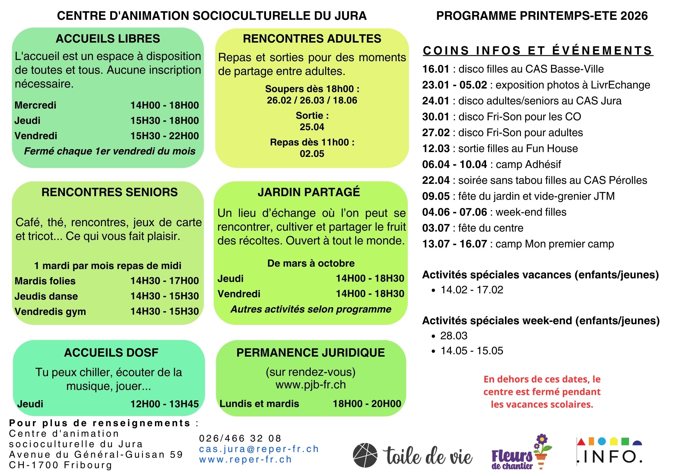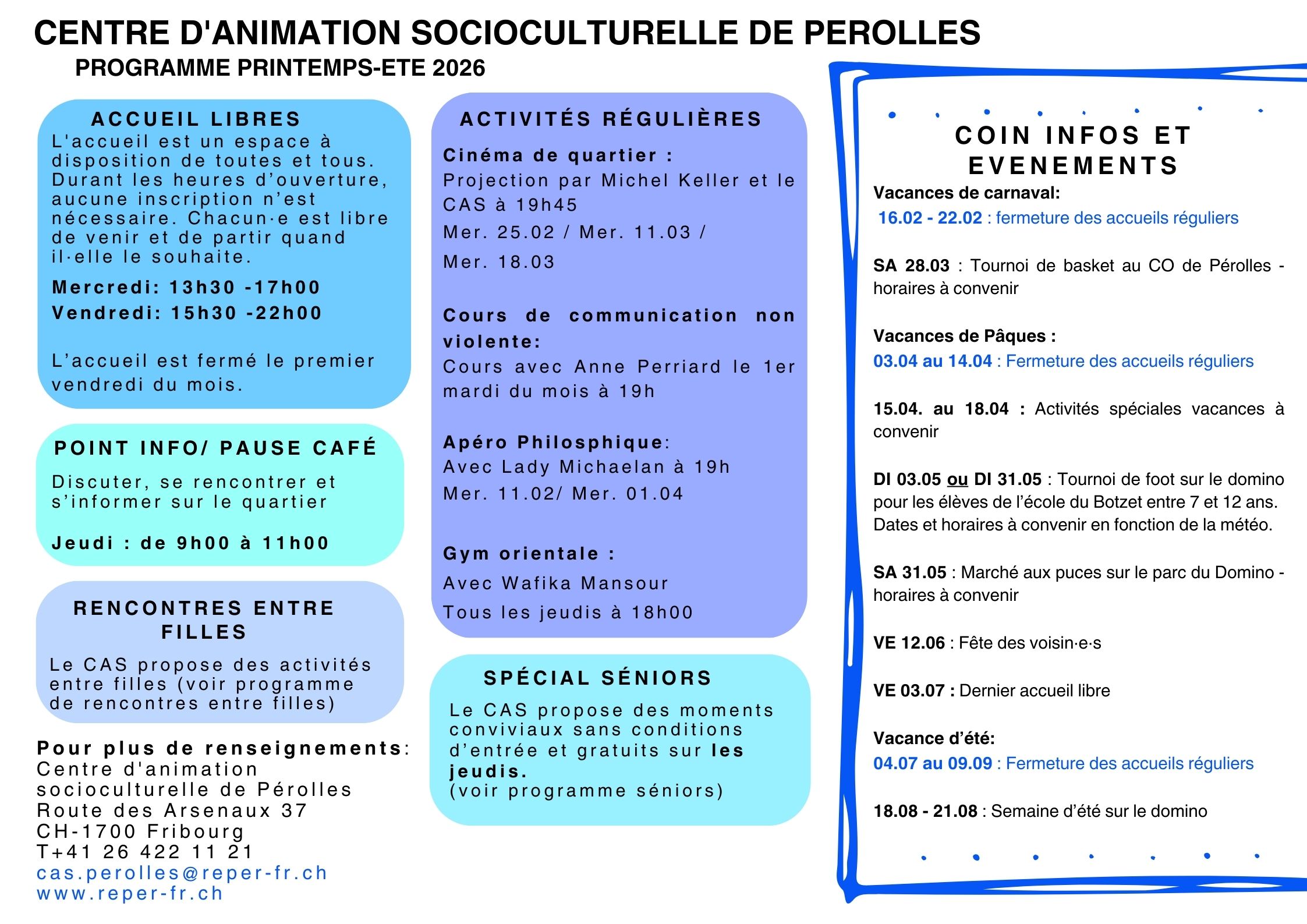 Les programmes des centres d’animation socioculturelle (CAS) de REPER pour la période janvier à juillet sont désormais disponibles !