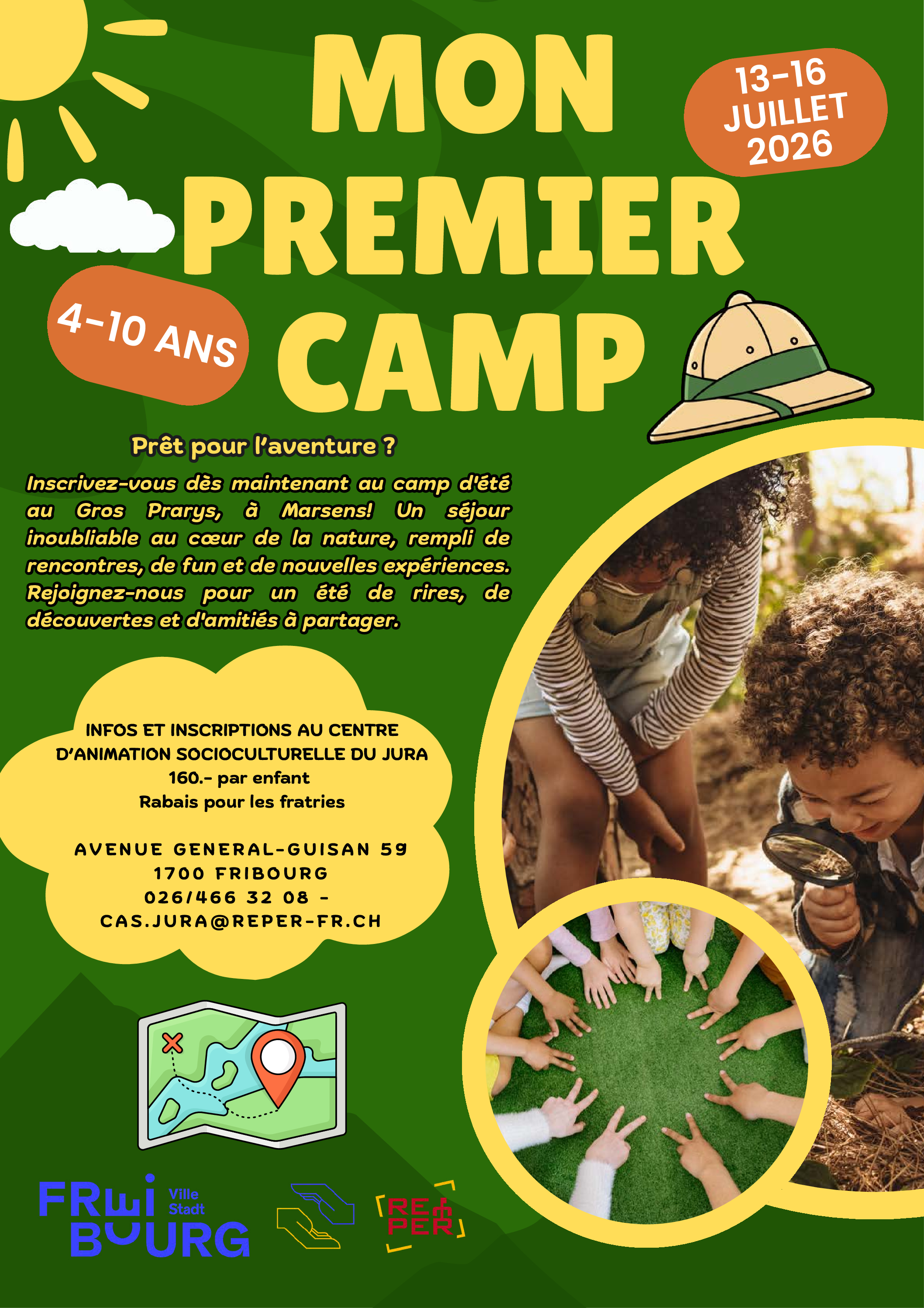 Du 13 au 16 juillet 2026, les centres d’animation socioculturelle (CAS) de REPER proposent aux enfants de 4 à 10 ans de vivre leur premier camp d’été au Chalet des Gros-Prarys à Marsens.
